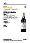 dominado pelas notas de frutos pretos maduros, com forte componente de aromas de compota de ameixas pretas e de chocolate preto. A estrutura é caracterizada por uma grande concentração e riqueza de taninos maduros. A boca surge assim volumosa, com austeridade e complexidade.